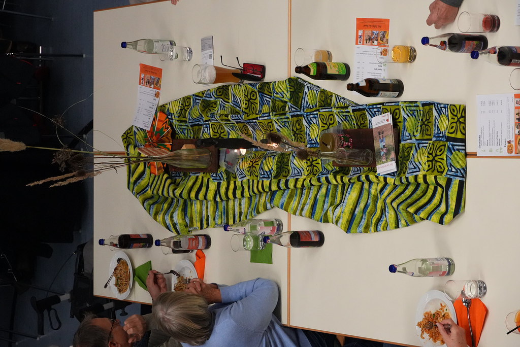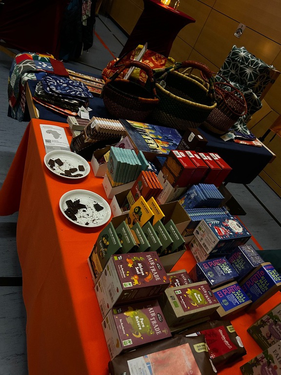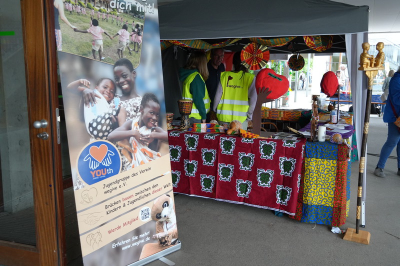 An unserem Stand konnte Selbstgenähtes aus originalen Ghanastoffen gegen Spenden erworben werden, danke an all unsere fleißigen Näherinnen. Es gab außerdem leckeres zu Trinken und Essen.
